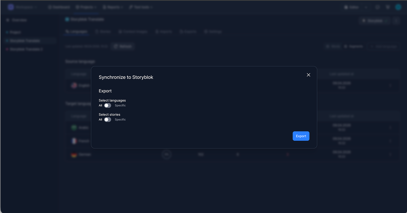 Once the content is finalized, the localized version can be pushed back into Storyblok through the export flow.